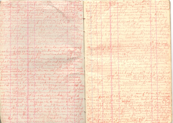 With tiny pen and ink writing she has managed to get a months entry to a page.